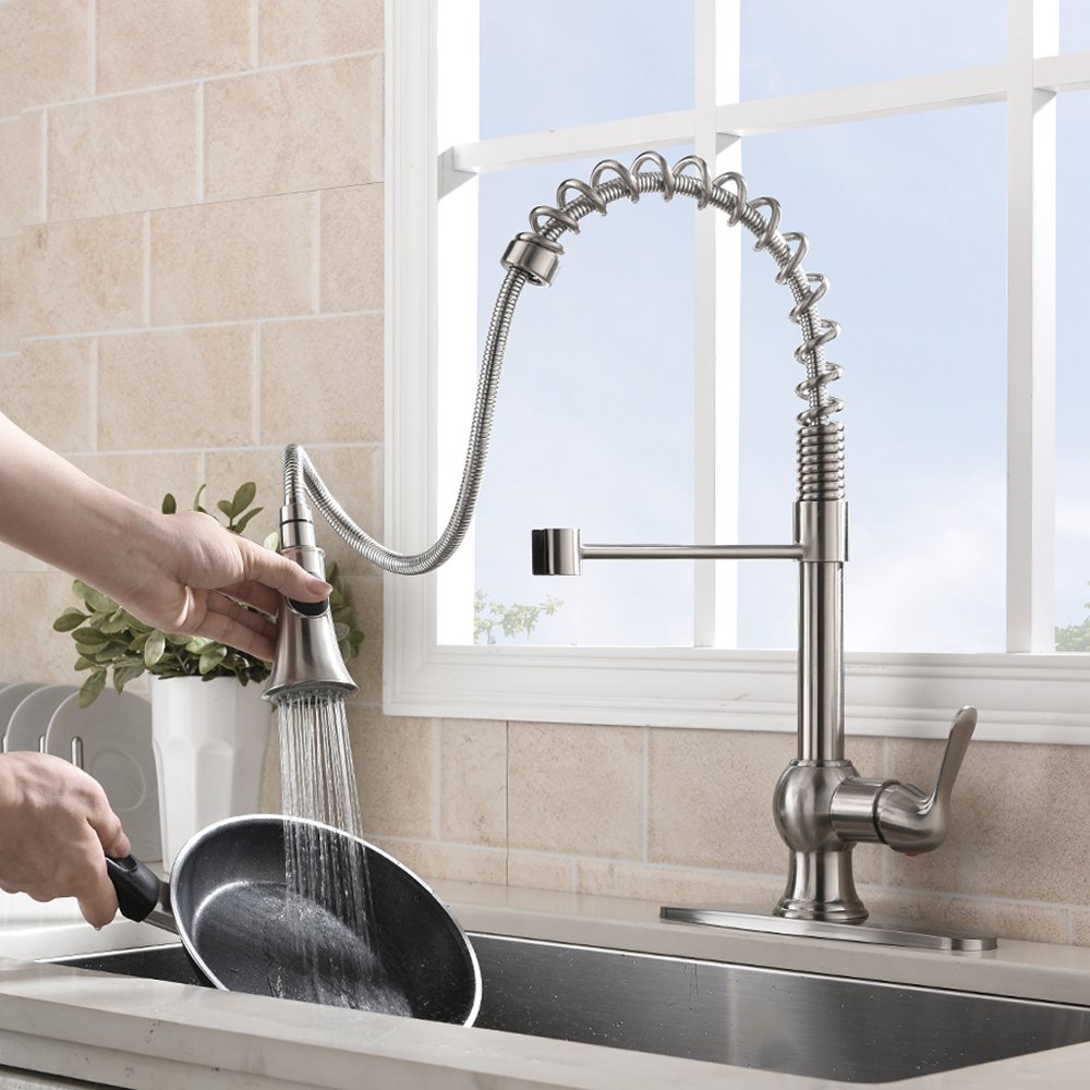 VESLA HOME Commercial Modern 2-Funcion Pull Out Single Handle Stainless Steel Pull Down Kitchen Faucet, Brushed Nickel Kitchen Sink Faucet