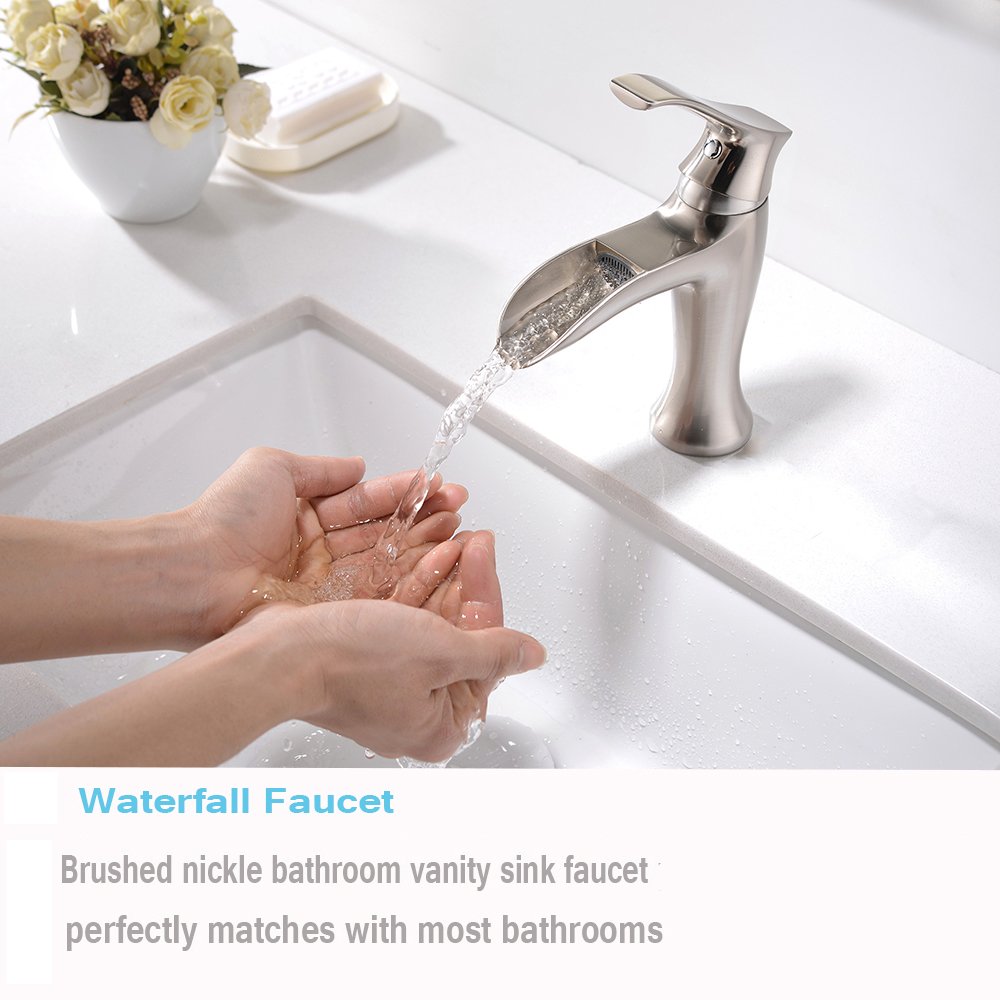VESLA HOME Single Handle Vessel One Hole Waterfall Brushed Nickel BathroomSink Faucets, Bathroom Sink Faucet Without Pop Up Drain